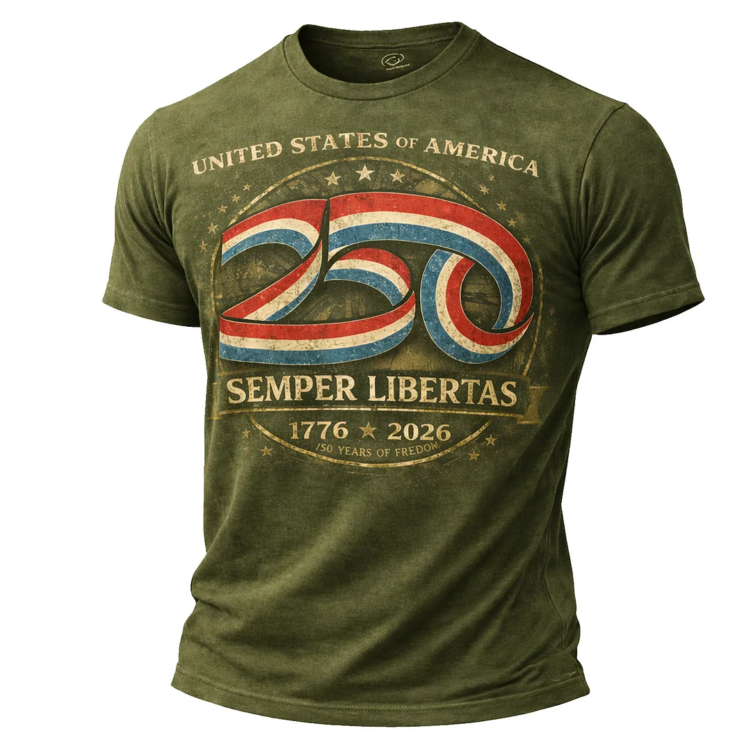• Details: Front Print with Eagle, Statue of Liberty, American Flag, 1776-2026, "United States of America", "250th Anniversary"