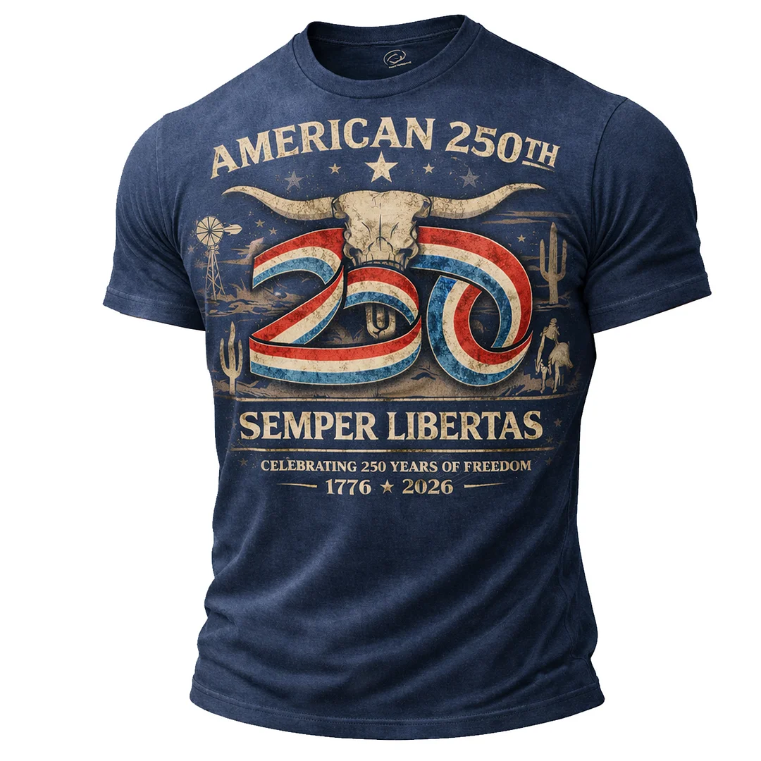 250th Anniversary USA Blue T-Shirt - Patriotic American Flag Design For Men