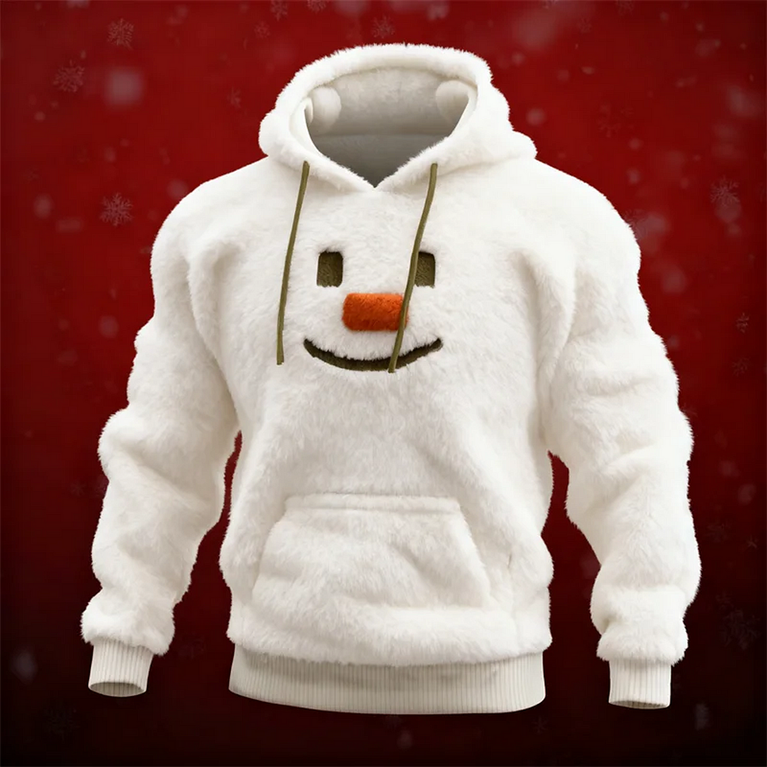 3D Print Christmas Ugly Sweater Men's Snowman Face Cozy Plush Hoodie