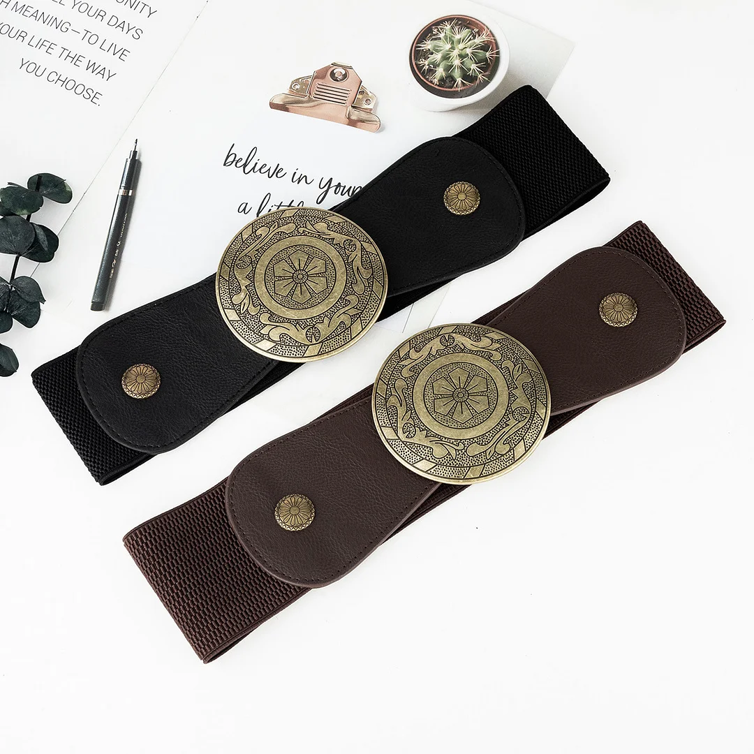 • Design Elements: Intricate Floral Buckle, Matching Side Buttons, Classic Round Shape