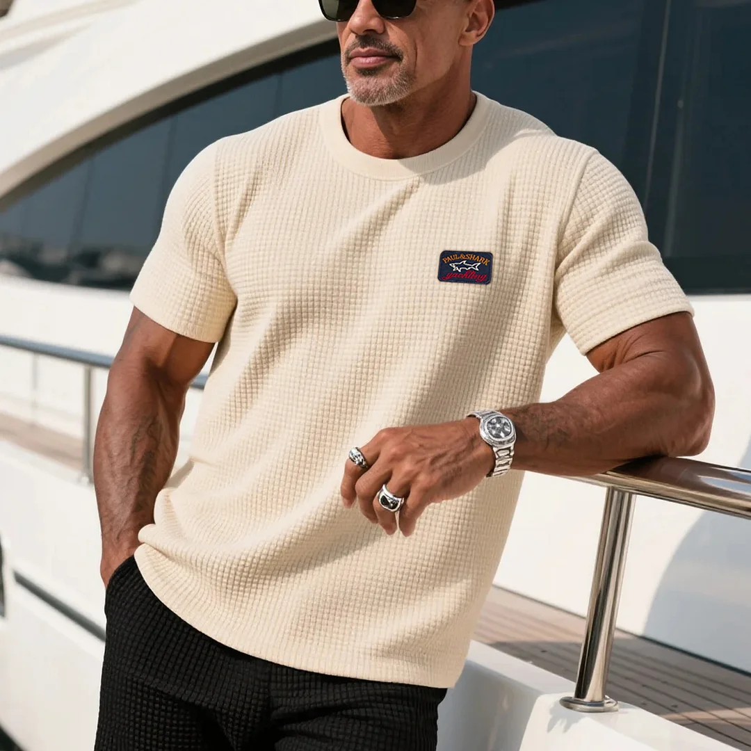 • Design Elements: Chest patch logo, ribbed texture
