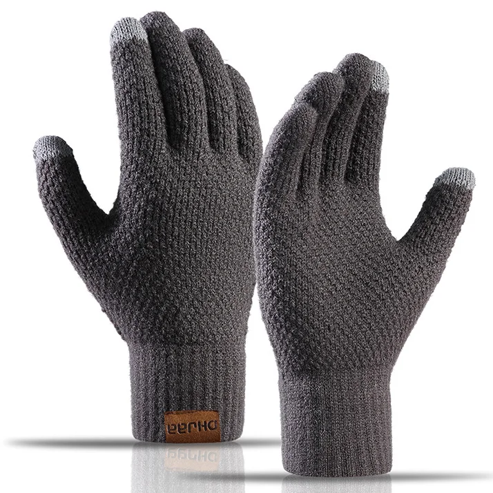 Men's Outdoor Fleece Warm Touch Screen Knit Gloves
