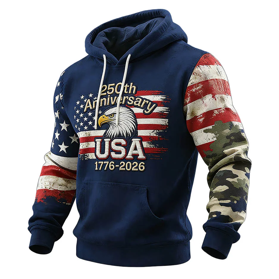 Men's Vintage 250th Anniversary American Flag Eagle 1776 Print Pocket Hoodie