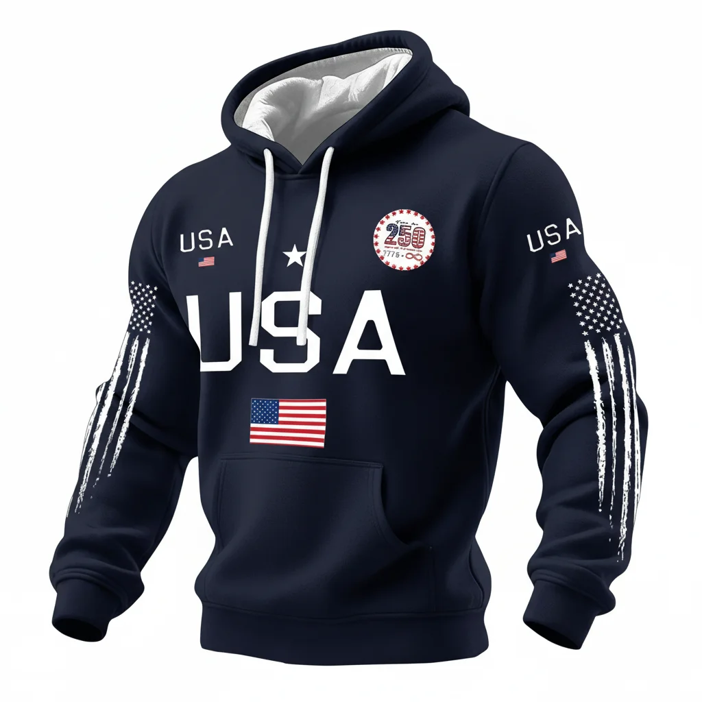 Men's Vintage 250th Anniversary American Flag USA Print Pocket Hoodie