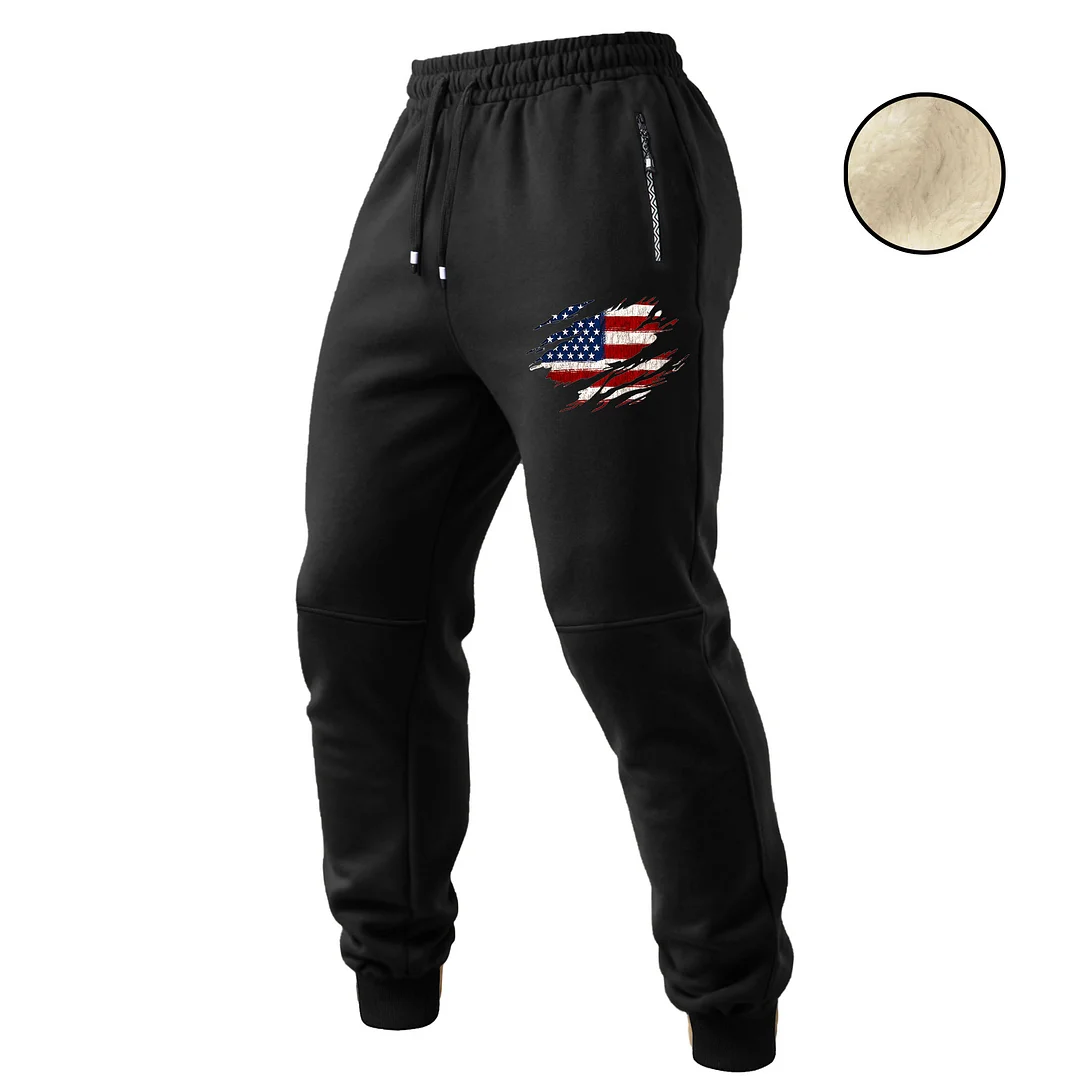 Men's Vintage American Flag Patriotic Fleece Zipper Pocket Elastic Drawstring Jogging Sweatpants