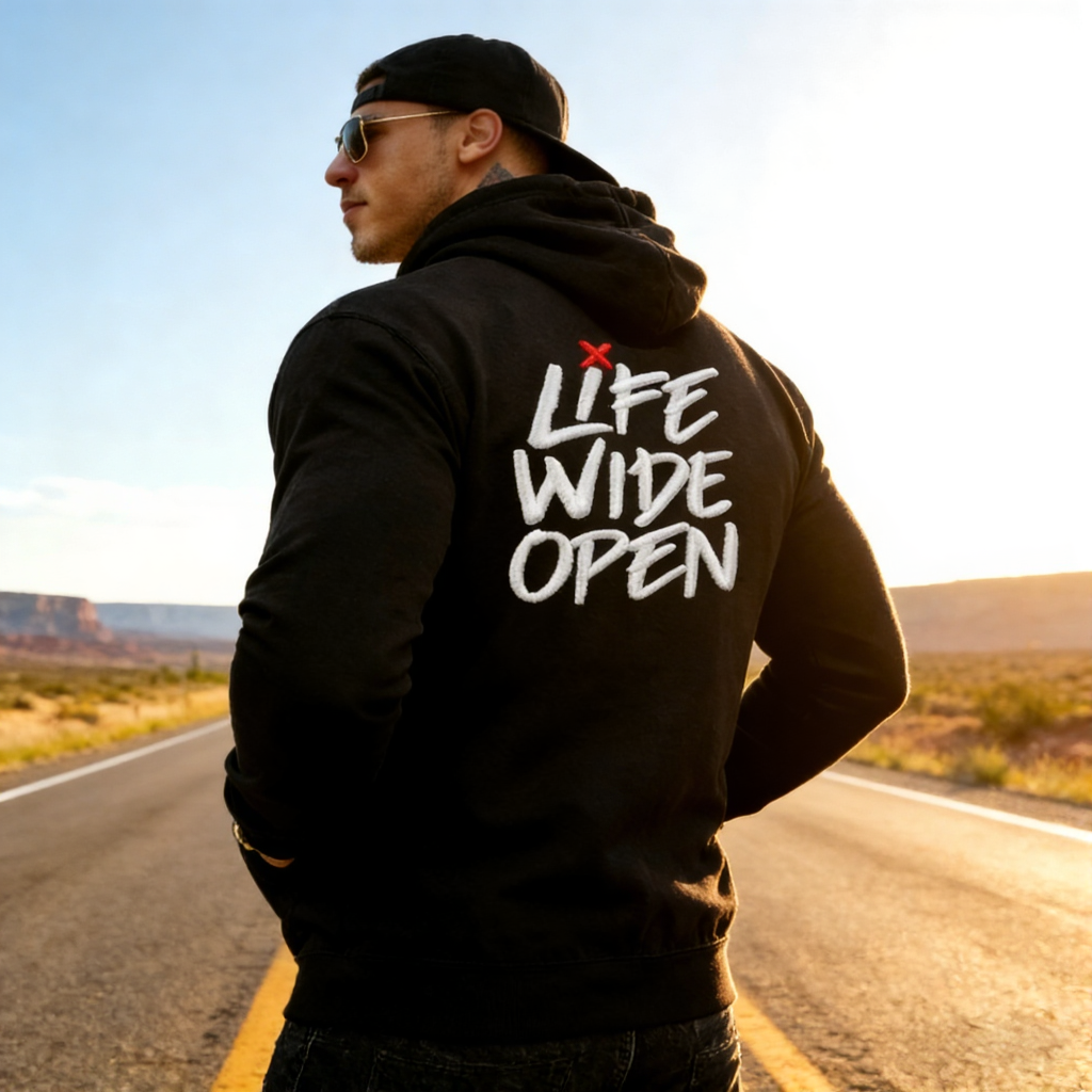 • Design Elements: Large Back Graphic Print, Red and White Typography, Star Accents, Layered Text Effect