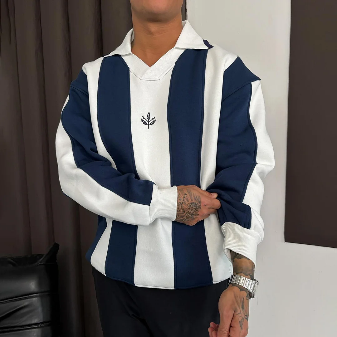 Striped Color-blocked Maple Leaf Print Oversized Hoodie