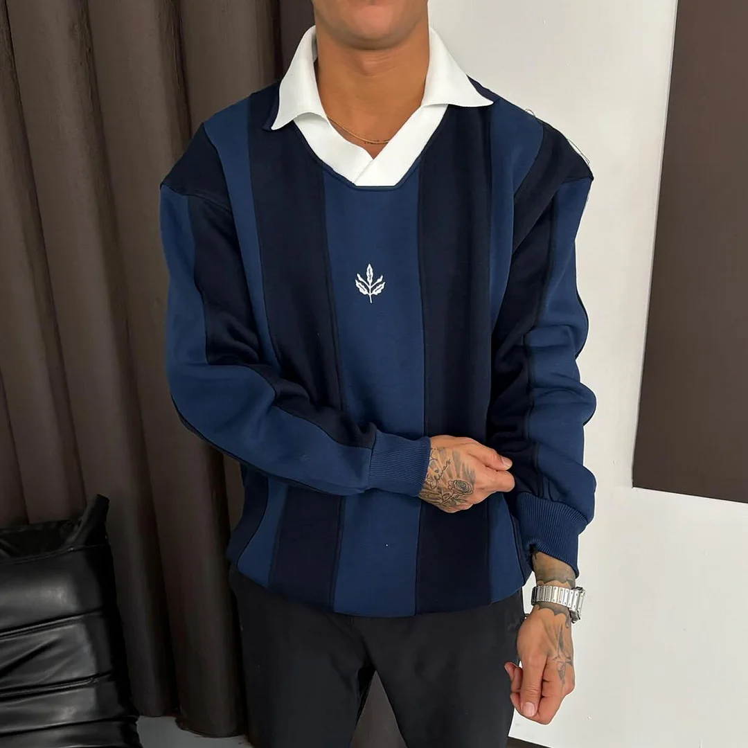 Striped Color-blocked Oversized Crew Neck Sweatshirt