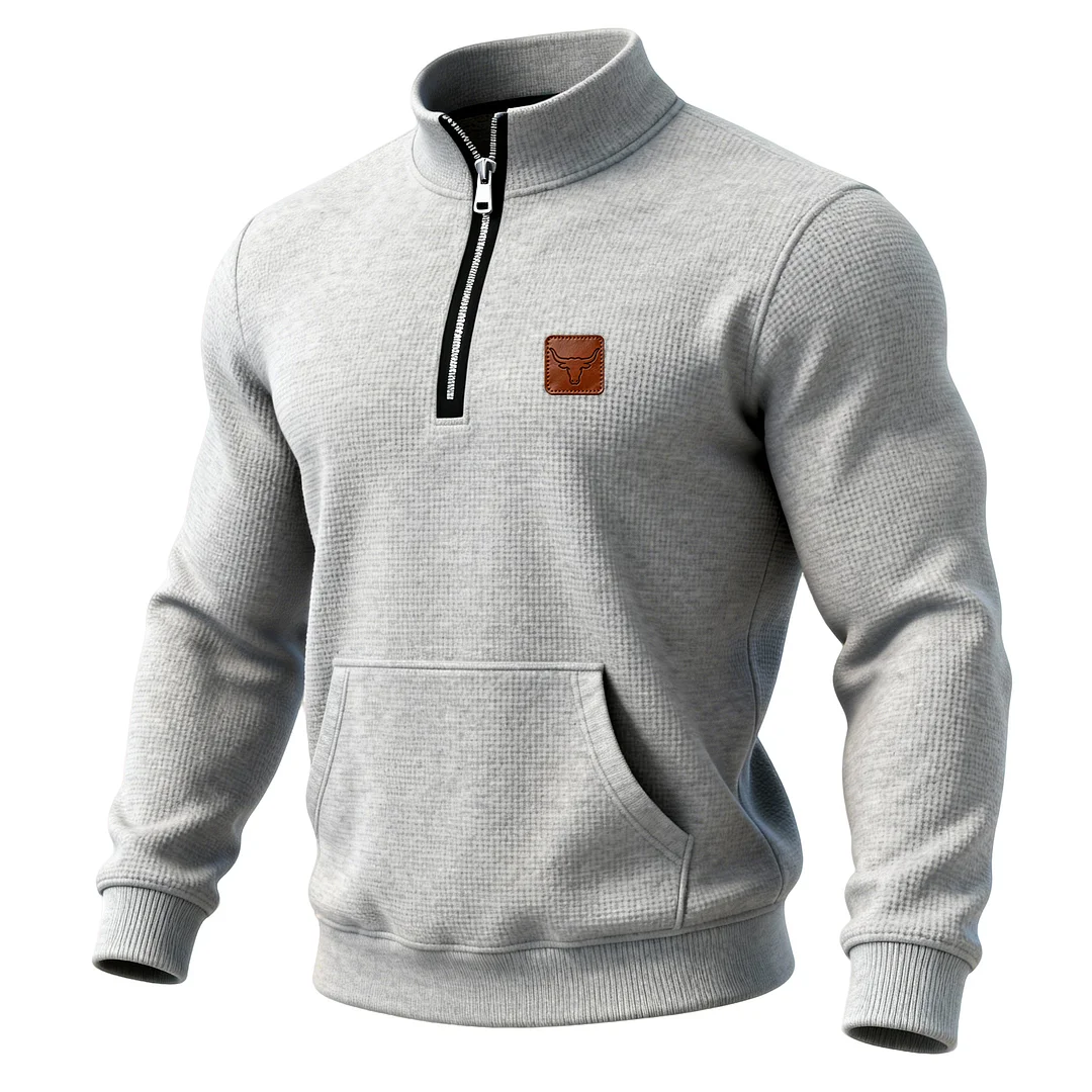 Unisex Outdoor Retro Style Mini Waffle Stand Collar Sweatshirt
