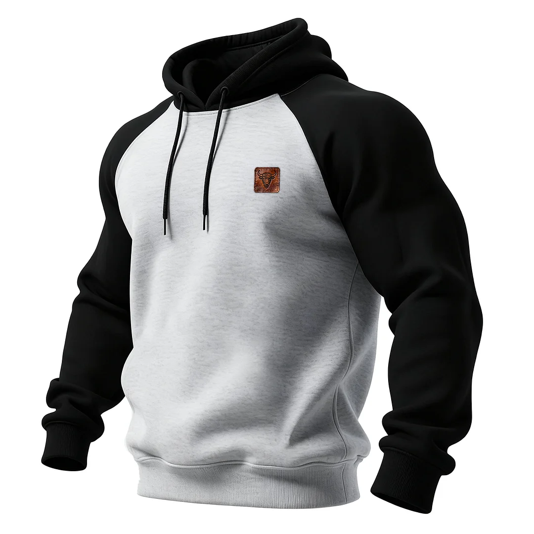 Unisex Outdoor Style Color-blocked Raglan Sleeve Hooded Sweatshirt