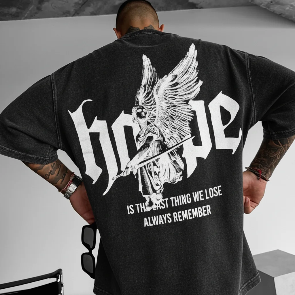 Unisex Oversize Casual Hope Letter Print Washed T-Shirt