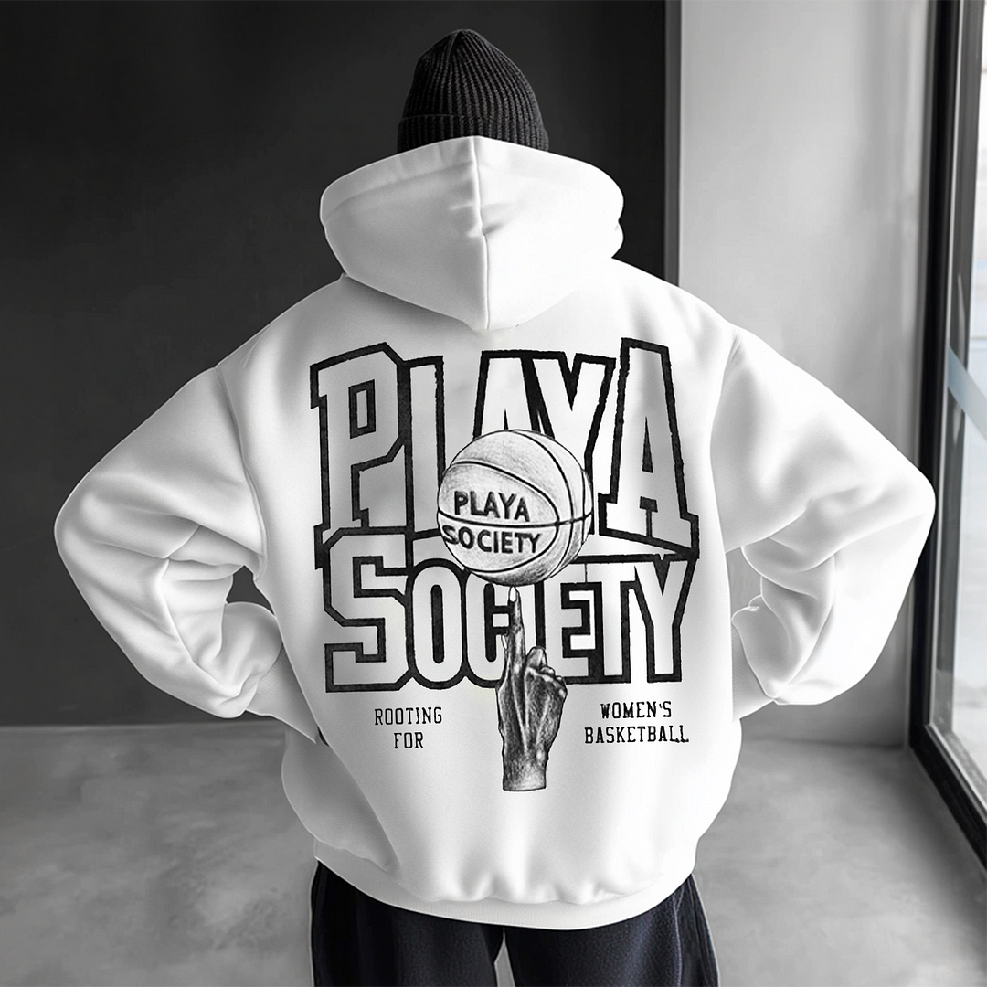Unisex White Basketball Print Print Oversized Casual Loose Hoodie