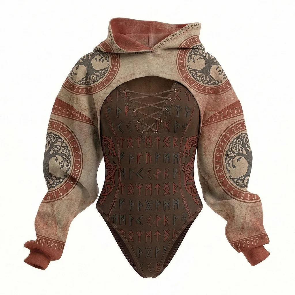 Viking Print Women's Hooded Jumpsuit Two-Piece Set by Inlyline