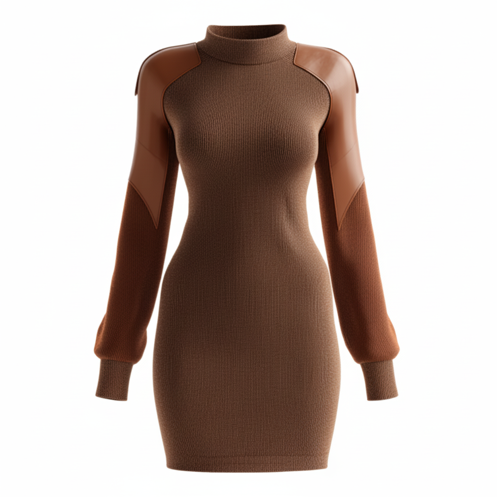 • Design Elements: Leather shoulder patches, ribbed texture, high-neck design