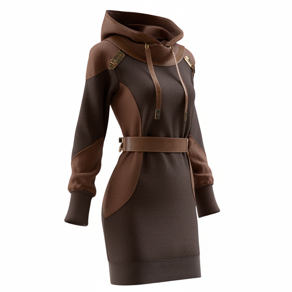 • Design Elements: Asymmetric color blocking, ribbed texture, high neck
