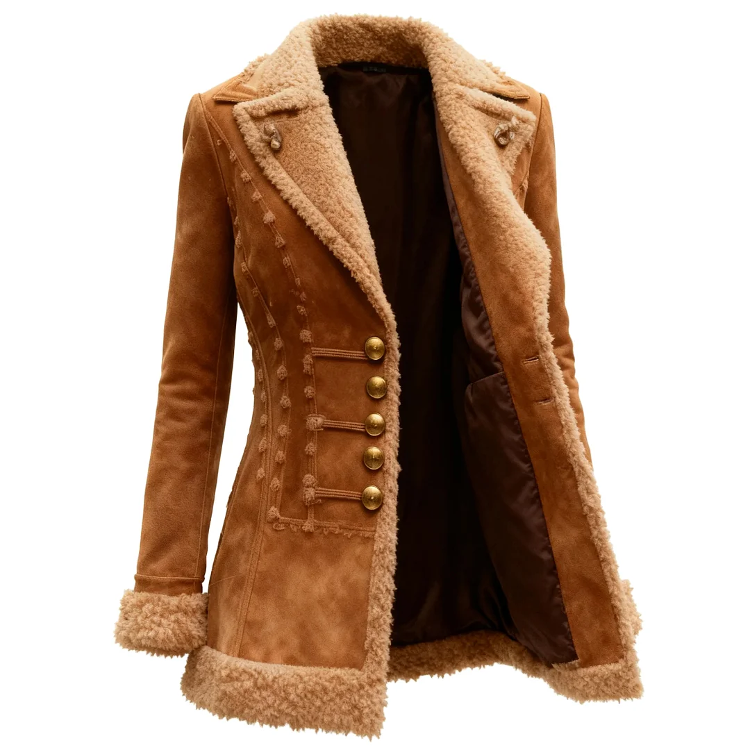 Women's Vintage Button-Down Lambswool Lapel Mid-Length Jacket Top